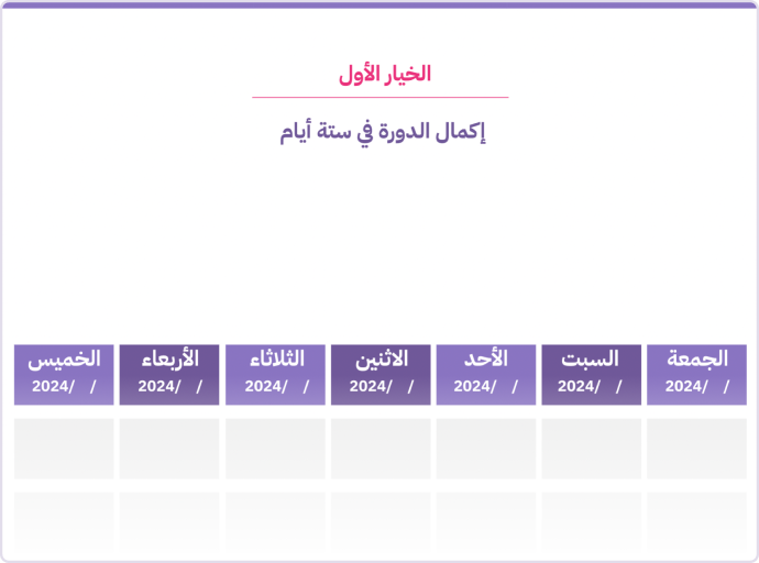 جدول البرنامج يعتمد البرنامج أحدث الطرق التدريبية حيث يمكن للطالب البدء في التعلم من البرنامج في أي وقت وصمّمنا كلندر يساعدك على اختيار طريقة التعليم والمدة المناسبة لك لتطبيق البرنامج. اقتنص عرضنا المحدود واحصل على أفضل سعر لهذا البرنامج رسوم الاشتراك عرض الاشتراك المبكر $129 $250 اكتمل 90٪ من المقاعد خذ العرض الآن